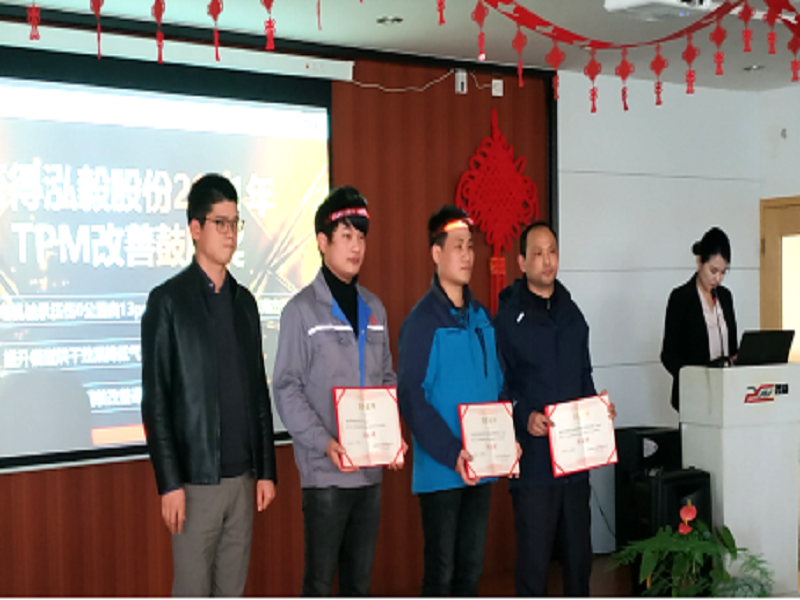 經(jīng)評選,大連嘉翔“智能制造——油壓機(jī)自動(dòng)上下料單元”改善、蕪湖普威“降低車身件焊點(diǎn)毛刺”改善、博耐爾“提升M1A冷凝器外觀一次出爐合格率”改善分別榮獲一二三等獎(jiǎng)。杰諾瑞“發(fā)電機(jī)軸承壓傷0公里由13ppm降低至0ppm”改善、泓鵠材料“提升模型烘干效果降低氣孔發(fā)生率”改善和金安世騰“安全帶拉脫”改善獲得鼓勵(lì)獎(jiǎng)。大連嘉翔張毅榮獲泓毅股份“2021年度TPM推行優(yōu)秀管理者”稱號,杰諾瑞榮獲泓毅股份“2021年度TPM推行管理A級單位”稱號。隨后,對獲獎(jiǎng)?wù)?獲獎(jiǎng)單位舉行了隆重的頒獎(jiǎng)儀式,并邀請獲獎(jiǎng)代表上臺(tái)發(fā)言。