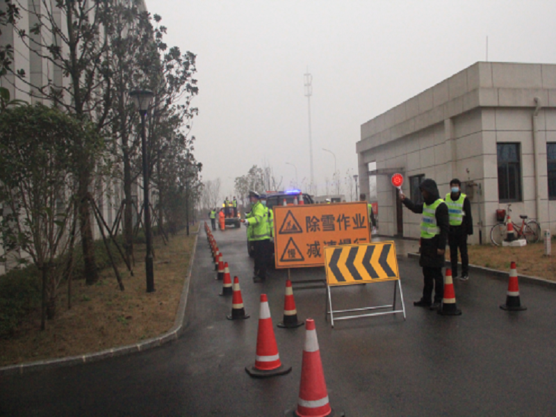 本次演練以接交警指令,銀湖路匝道積雪,需臨時封道清除積雪為背景,采取桌面推演與實戰(zhàn)演練相結(jié)合。共分為三個環(huán)節(jié),先是通過電子屏幕作銀湖路臨時封道作業(yè)桌面推演,全面展示交通應(yīng)急力量應(yīng)對多樣災(zāi)種綜合應(yīng)急處置能力。再到情報板信息發(fā)布模擬演練,針對路面積雪情況變化及時同步更新情報板提示信息,配合啟用高音喇叭提醒過往車輛。最后進行道路除雪實操演練,指令下達后,應(yīng)急人員、機械車輛迅速趕到園區(qū)北側(cè)輔路集結(jié)完畢,在交管車輛的指引下,向模擬積雪路段行進,開始投入緊張的除雪鏟冰作業(yè)當(dāng)中。