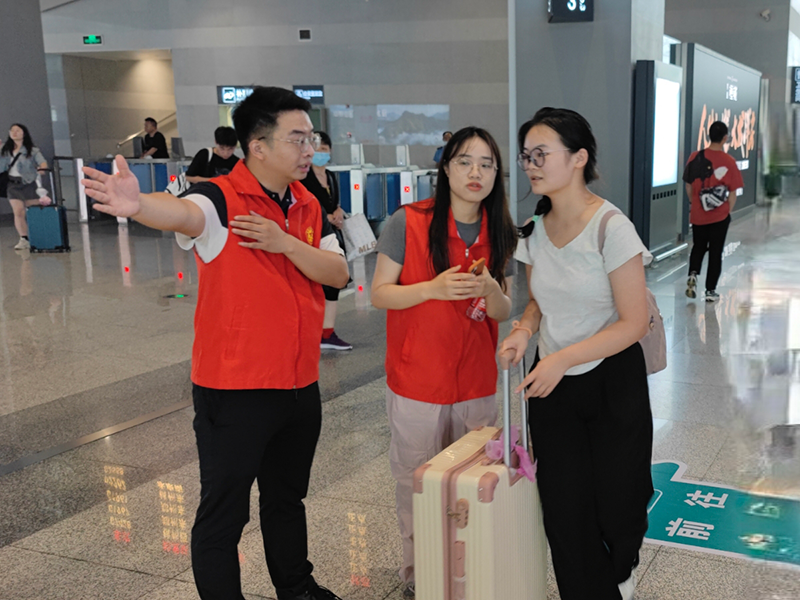 端午節(jié)將近,火車站內(nèi)來往乘客絡(luò)繹不絕,黨員同志們堅(jiān)守著各自的崗位為乘客們提供志愿者服務(wù):面對不知路線的乘客,他們親切地詢問并指引;遇到尋找購票窗口的乘客,他們熱情地為其引導(dǎo);看見行李繁多的乘客,他們主動地上前分擔(dān)……